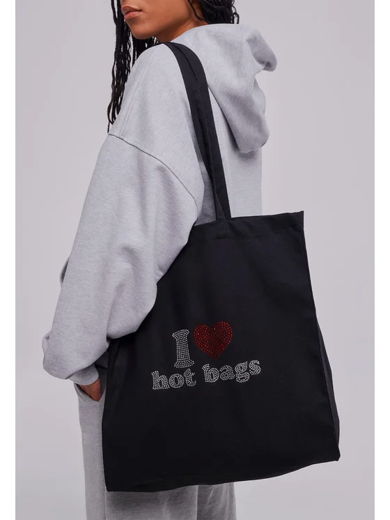 Černá taška zdobená žetony na přední straně.