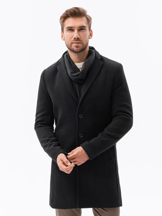 Ombre Kabát pro přechodné období OM-COWC-0105 Černá Regular Fit